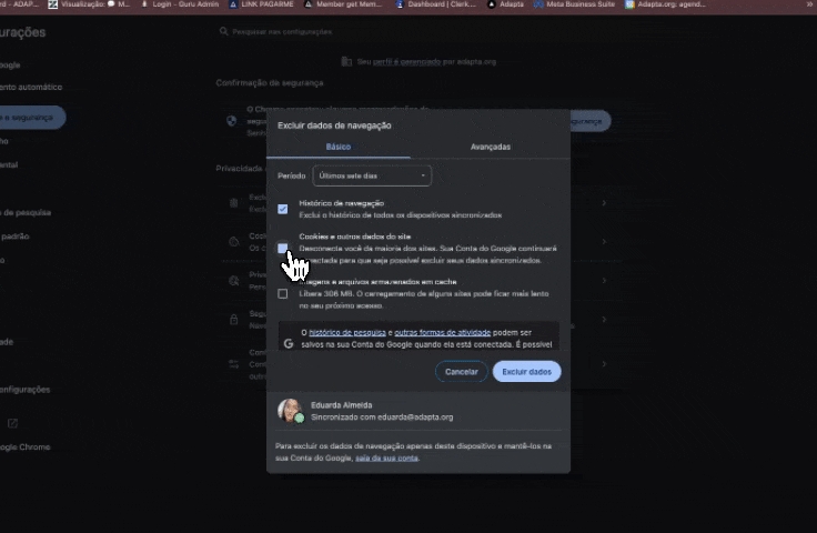 2. Limpe o cache e os cookies do navegador
