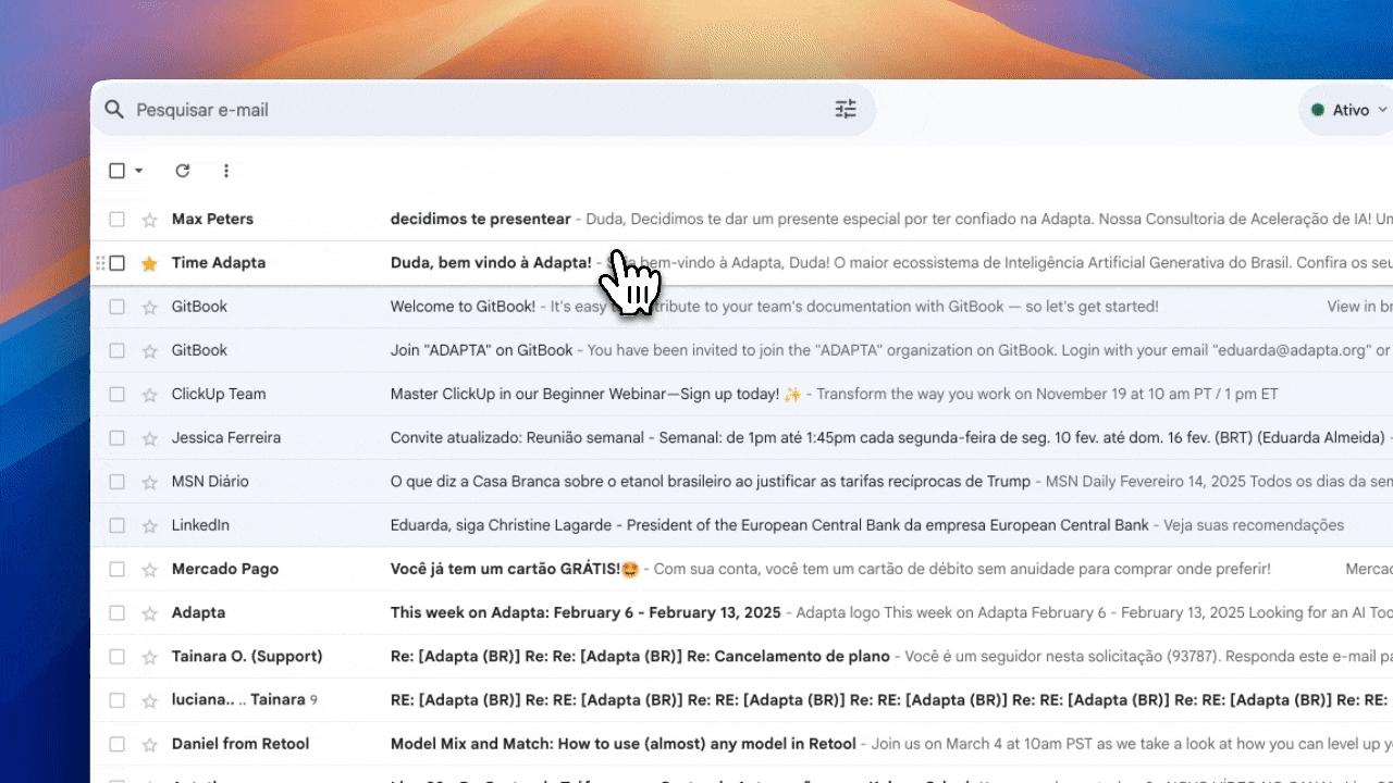 Recomendo que você verifique sua caixa de entrada, incluindo as pastas de spam ou lixo eletrônico, procurando pelo e-mail de boas-vindas da Adapta. Neste e-mail, você encontrará sua senha padrão. Copie essa senha e tente fazer o login na plataforma.